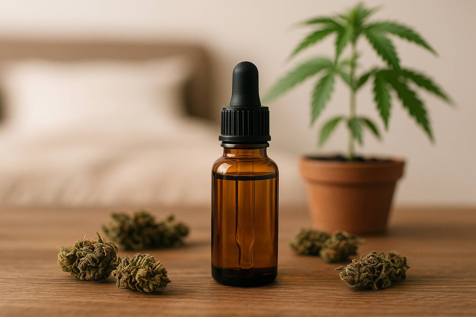 • Espacio de descanso confortable: temperatura agradable, oscuridad suficiente y una cama cómoda ayudan a potenciar el efecto relajante del CBD.